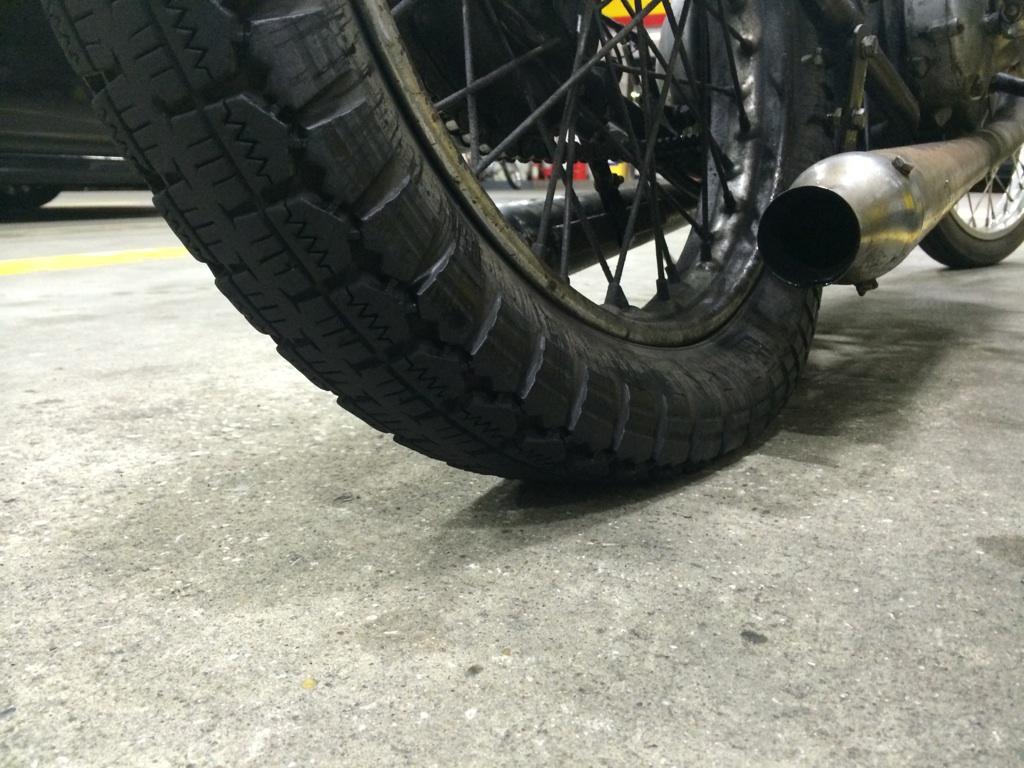マジマジと見ると古いタイヤの溝は恐ろしいくらいに擦り減っていました。