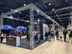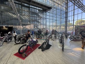広く明るくなった会場にカスタムバイクだけでなく、バイクメーカーが大きなブースを展開していたりと、