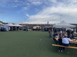 コート内には、車両が展示され、広場には、物販やフードのブースがあり、