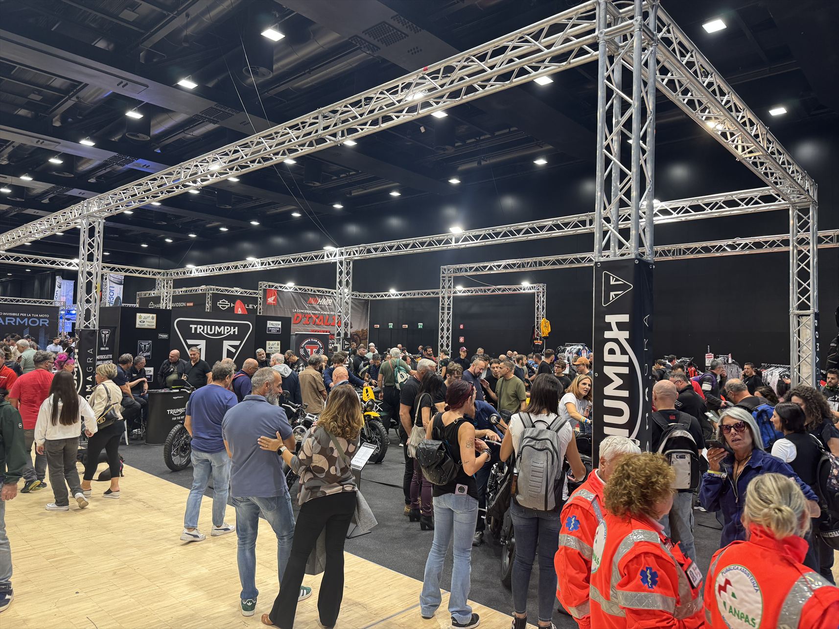広く明るくなった会場にカスタムバイクだけでなく、バイクメーカーが大きなブースを展開していたりと、