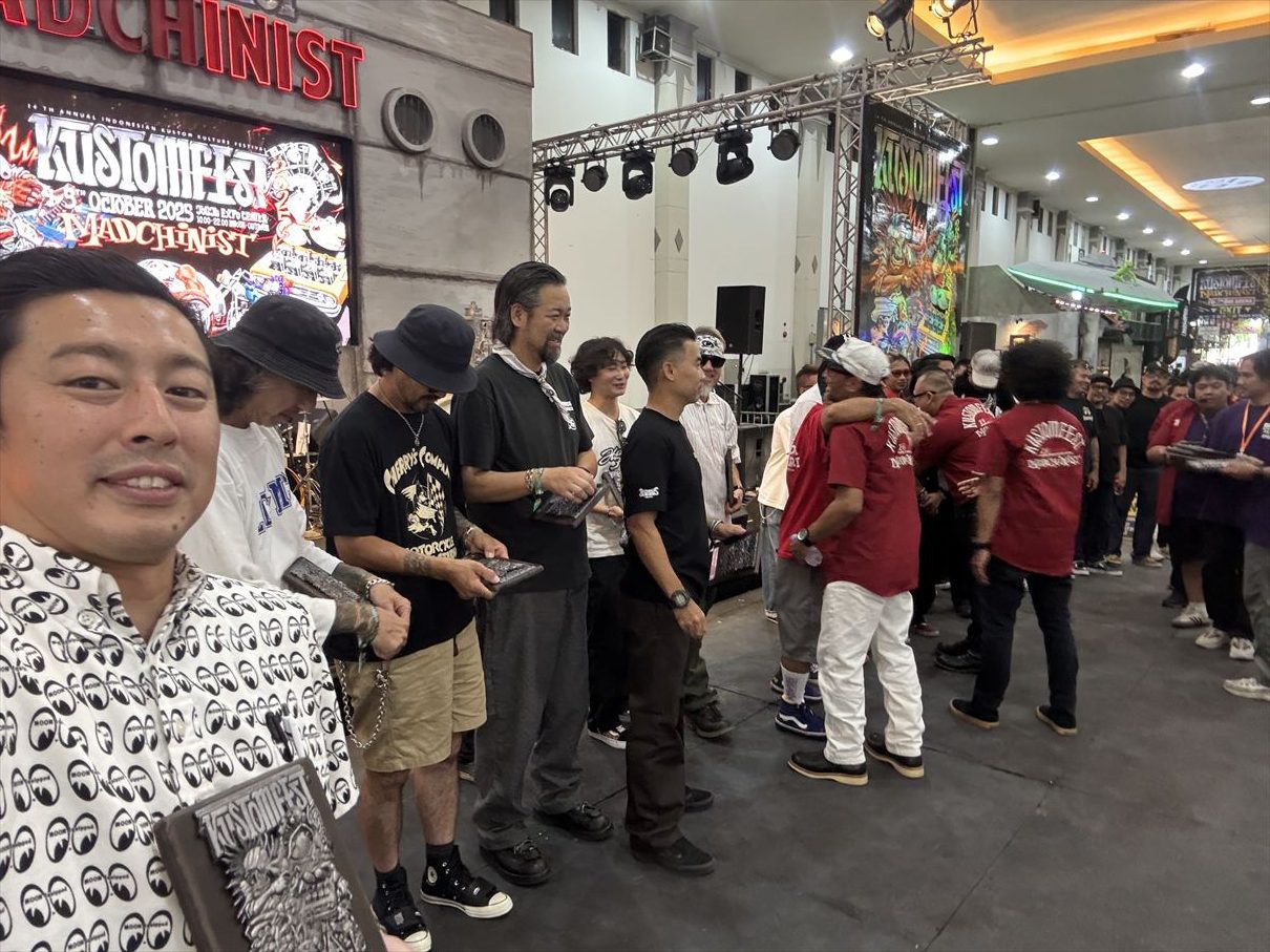 今回のイベントには、先週インドネシアでお会いしたMOONEYES Shop BKK MarkさんとBangkok HCS Bombさんもスペインに来ていましたので、