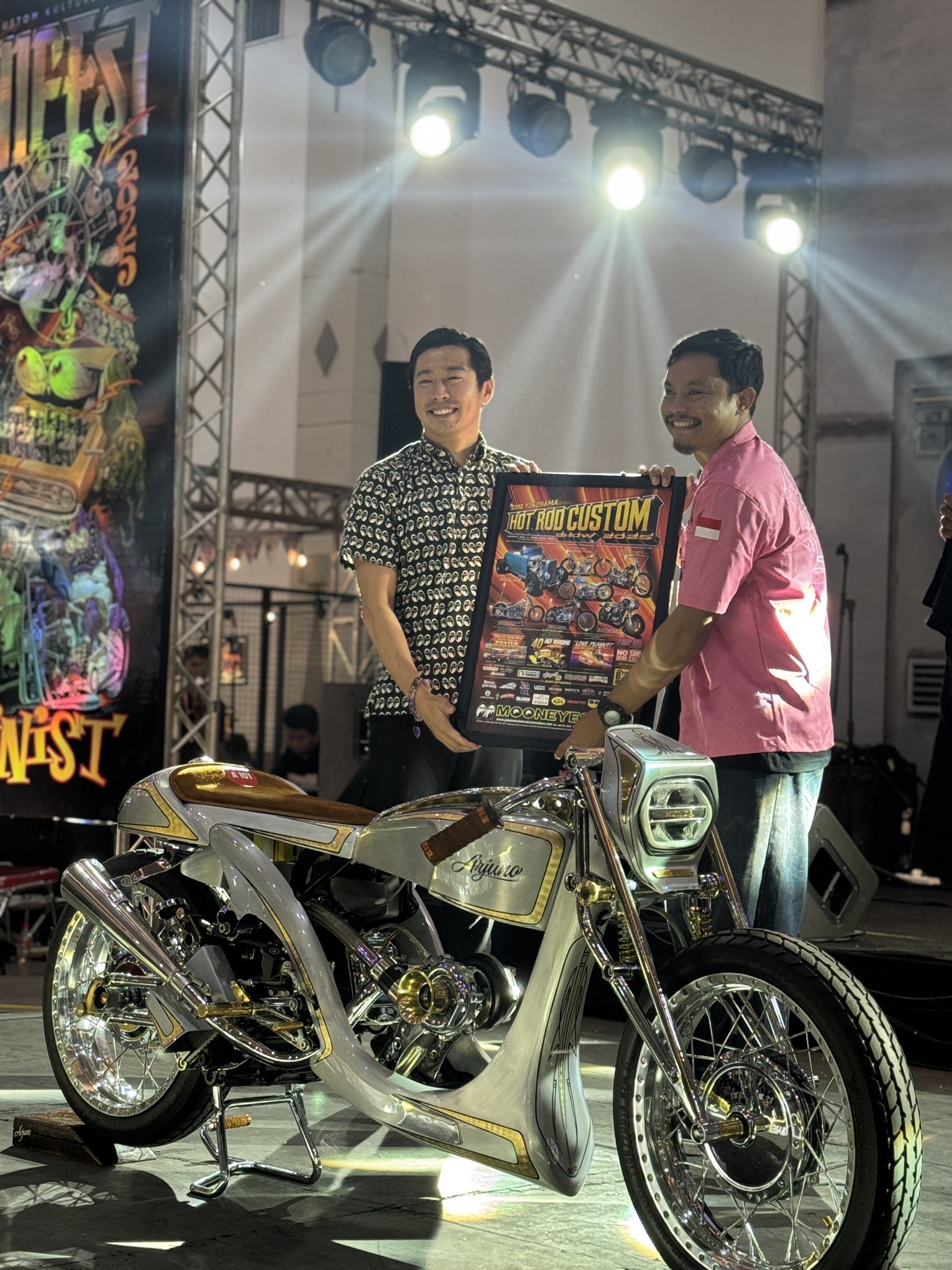 今年のHOT TOD CUSTOM SHOWの告知をさせてもらったり、インドネシアホンダのスクーターカスタムの優勝者発表に参加したり、