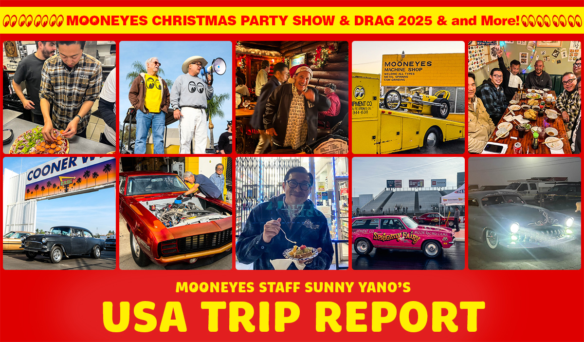 そこからMOONEYES USAのGo-sanに迎えにもらいました。