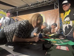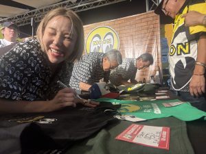 MQQNEYESブースは、ブースを離れることも出来ないほど多くのお客様がいらっしゃり、Shige-san, emi-san,”Wildman”Ishii-sanもサイン攻め!