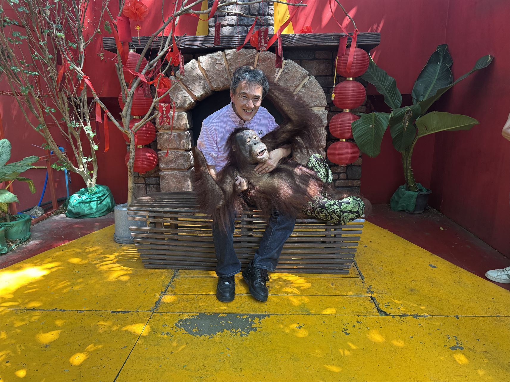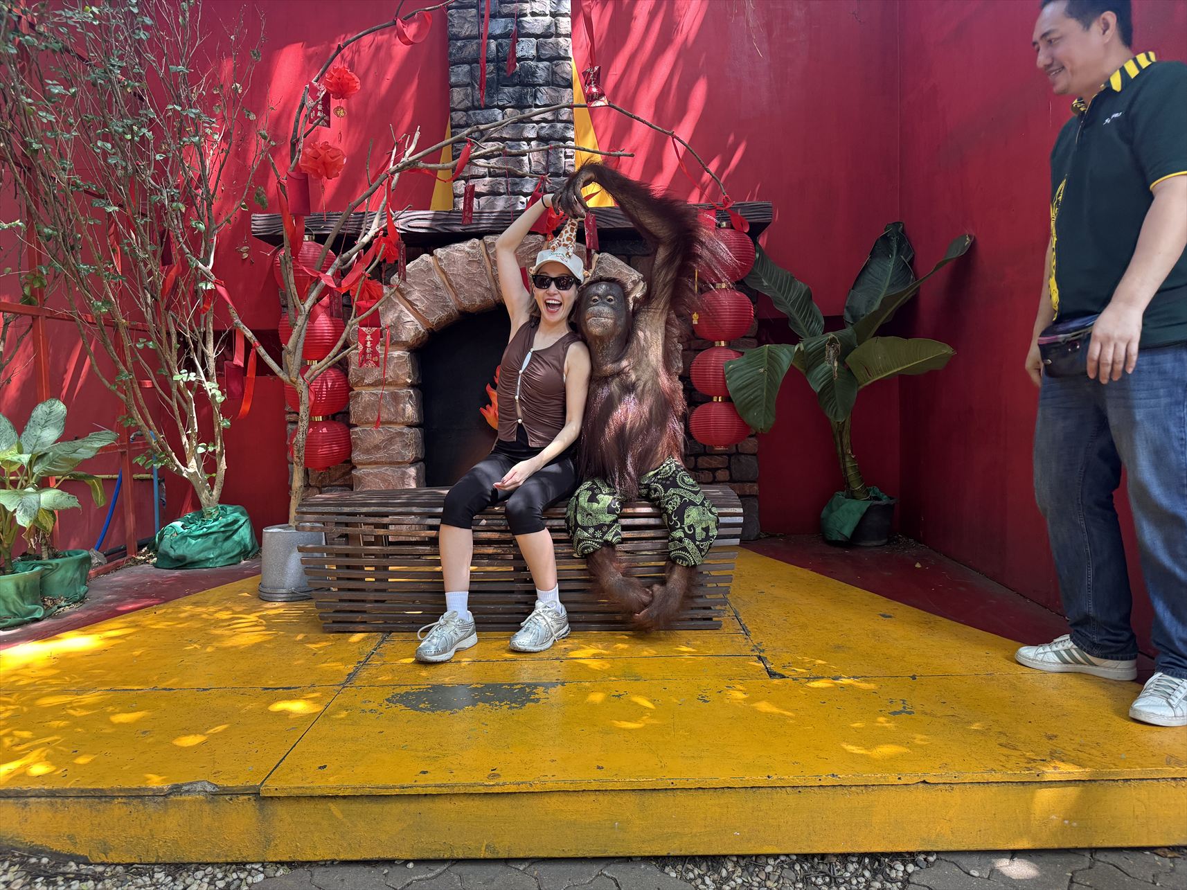 emi-sanと“Wildman” Ishii-sanは、オランウータンとトラと一緒に無事記念撮影を撮ることが出来ていました。