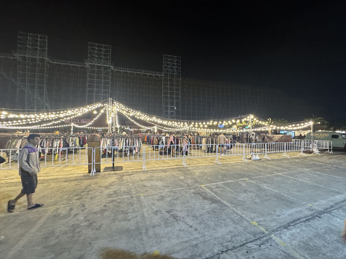 まだ設営途中の会場を見て、夜ご飯は、ナイトマーケットでお決まりのボートヌードル!